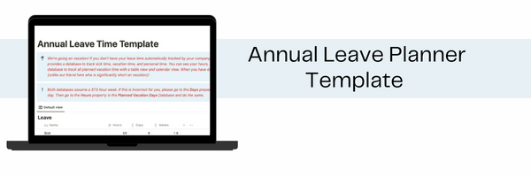 We’re going on vacation! If you don’t have your leave time automatically tracked by your company, you’re a contractor or freelance, or you want to track it for yourself, this is for you. This template provides a database to track sick time, vacation time, and personal time. You can see your hours, days, and weeks at a glance. You can also see your total leave at the bottom. It also provides a database to track all planned vacation time with a table view and calendar view.
